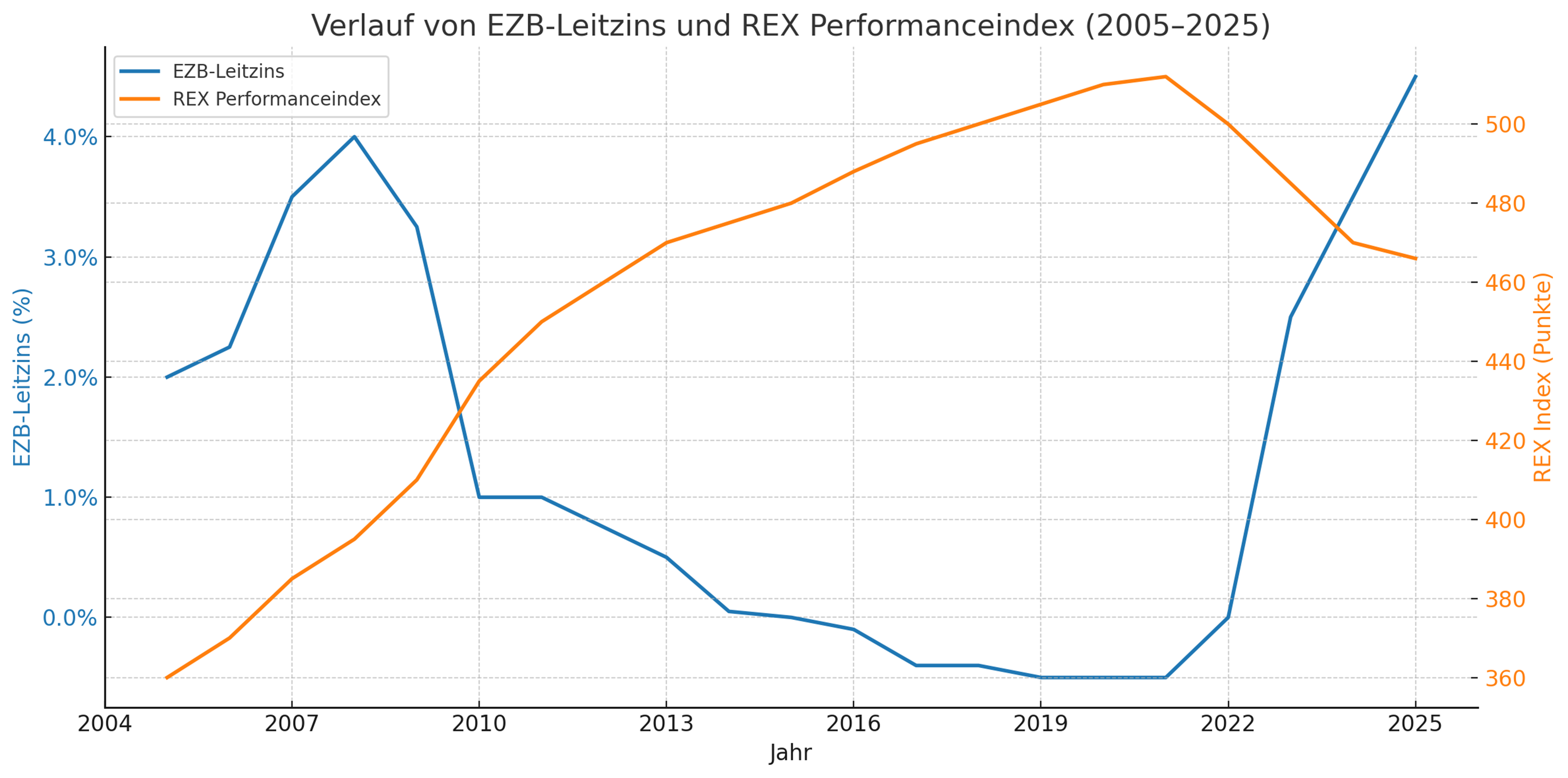Der REX Performanceindex – der deutsche Rentenindex – spiegelte diese Entwicklung eindrucksvoll wider: Anleger konnten Zinsen kassieren und Kursgewinne realisieren, selbst bei geringem Risiko.